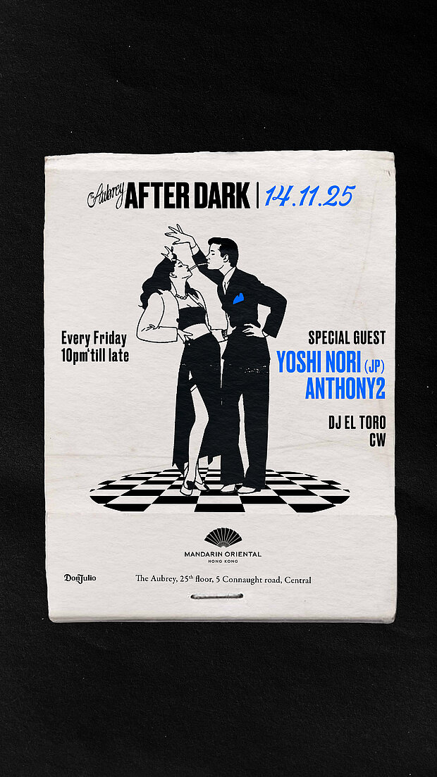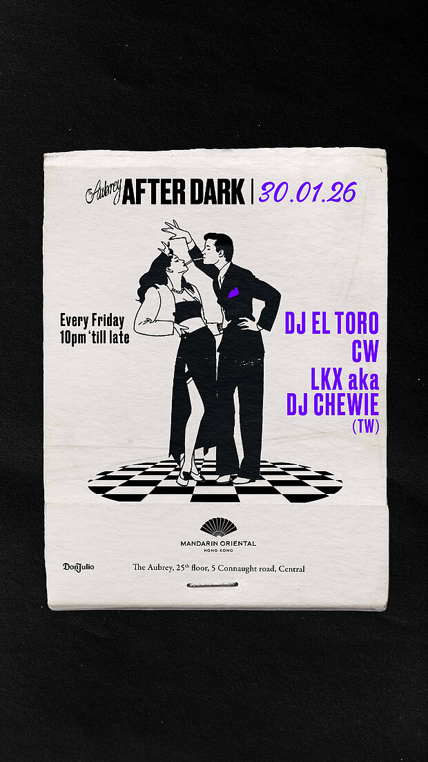 Ignite the dancefloor and revel in a new luxury nightlife experience at The Aubrey After Dark every Friday night from 10pm until late at The Aubrey. Featuring Cosmo Webber, The Aubrey’s first curator-in-residence from London’s contemporary party circuit and Hong Kong’s DJ legend Andrew Bull aka DJ El Toro and the best underground DJs from London, New York, and Paris paired with top local DJs, bringing you a mixture of soulful house and disco music from Europe and America